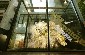 Training for women in Taipei was seen as a chore, un-glamorous and ultimately unnecessary. Nike TPE6453 was transformed into a women’s training center that would aim to inspire a new generation of women and promote sisterhood. The space showcased Nike global female athletes and their stories as well as the upcoming line of product. The window tells the story of local tennis hero Kelly Chang, and her rise into the world rankings. the racket installation at the street level portrays Kellys blossoming into a powerful woman and athlete by representing the national flower of Taipei, the Apple Blossom. The upstairs showroom was transformed into a dance and yoga studio for instructional classes.