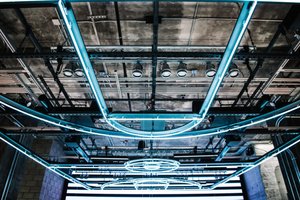 The interior concept was based around how James Harden is turning the game on its head. So we flipped the basketball vernacular, and put the neon court on the ceiling. We foreshortened the court to tweak the perspective. The rafters and gym lights we put on the floor and used them as accents to highlight his signature shoe which was suspended above it.